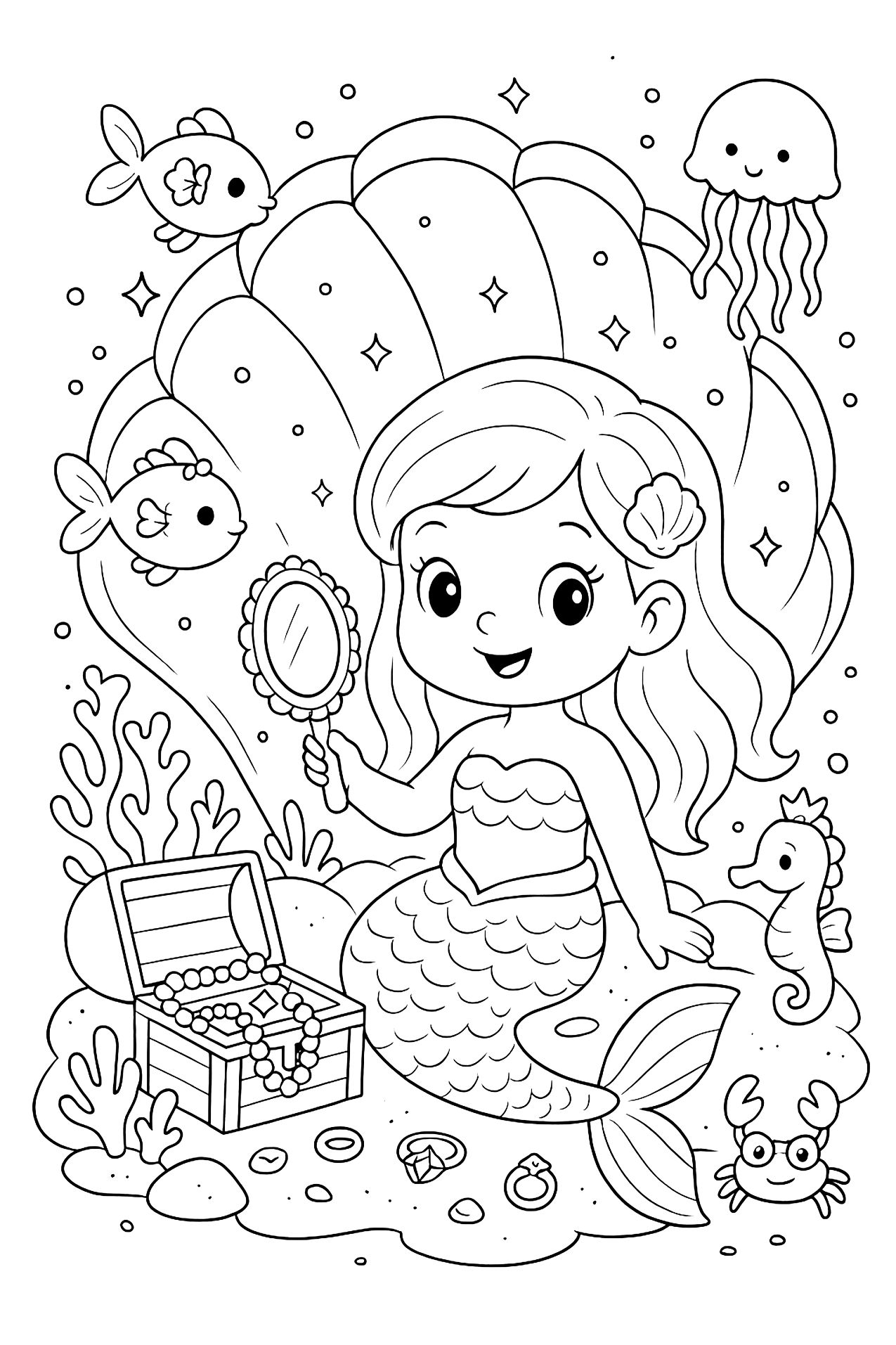 Die klaren schwarz-weißen Illustrationen eignen sich für Kinder und Erwachsene gleichermaßen und sorgen für entspannte Ausmalmomente.